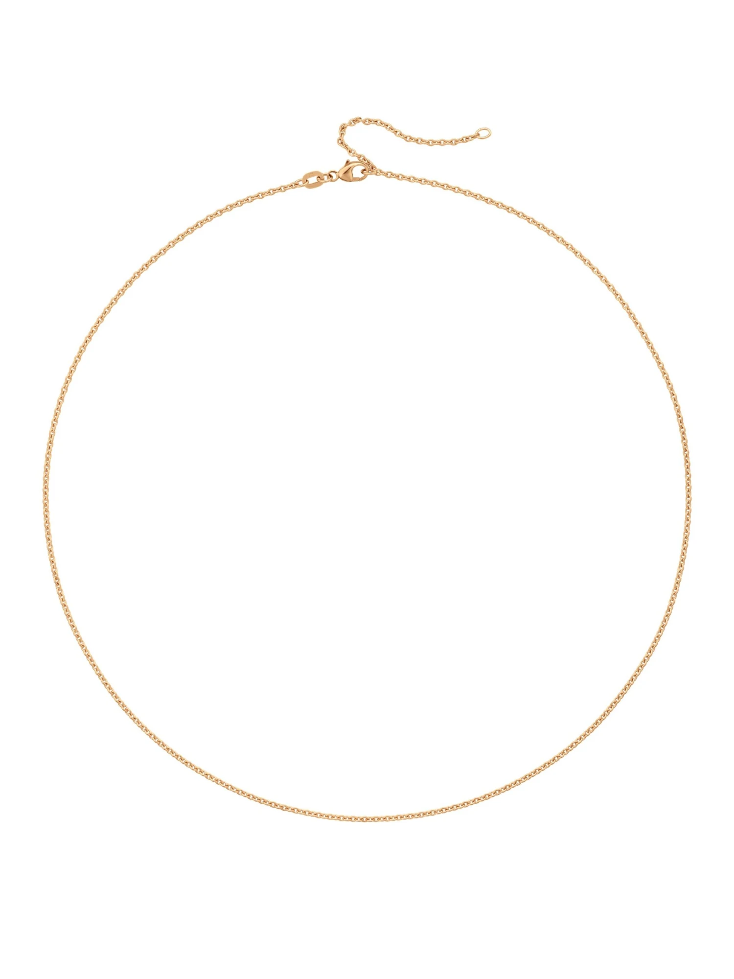The necklace in 18k yellow gold from the Basics by Wempe Classics line is a standard item in every jewelry box. The sleek cable chain has a diameter of 1.7 millimeters. It has a total length of 50 centimeters – at 45 centimeters there is a shortening eyelet to shorten the necklace. This means it is worn very close to your neck and gives every blouse outfit an elegant look. A swivel-clasp lock ensures it is secure.