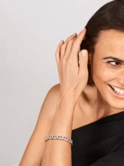 68 brilliant-cut diamonds with a total carat of 1.67 ct create gentle light accents in the Blu Square BY KIM bracelet. The diamonds in a haloed prong setting integrate seamlessly into the row of Blu elements creating its unique movement. The 18k white gold design gives the bracelet an aura of refined sophistication. A piece of jewelry that proves its timeless elegance on every occasion.