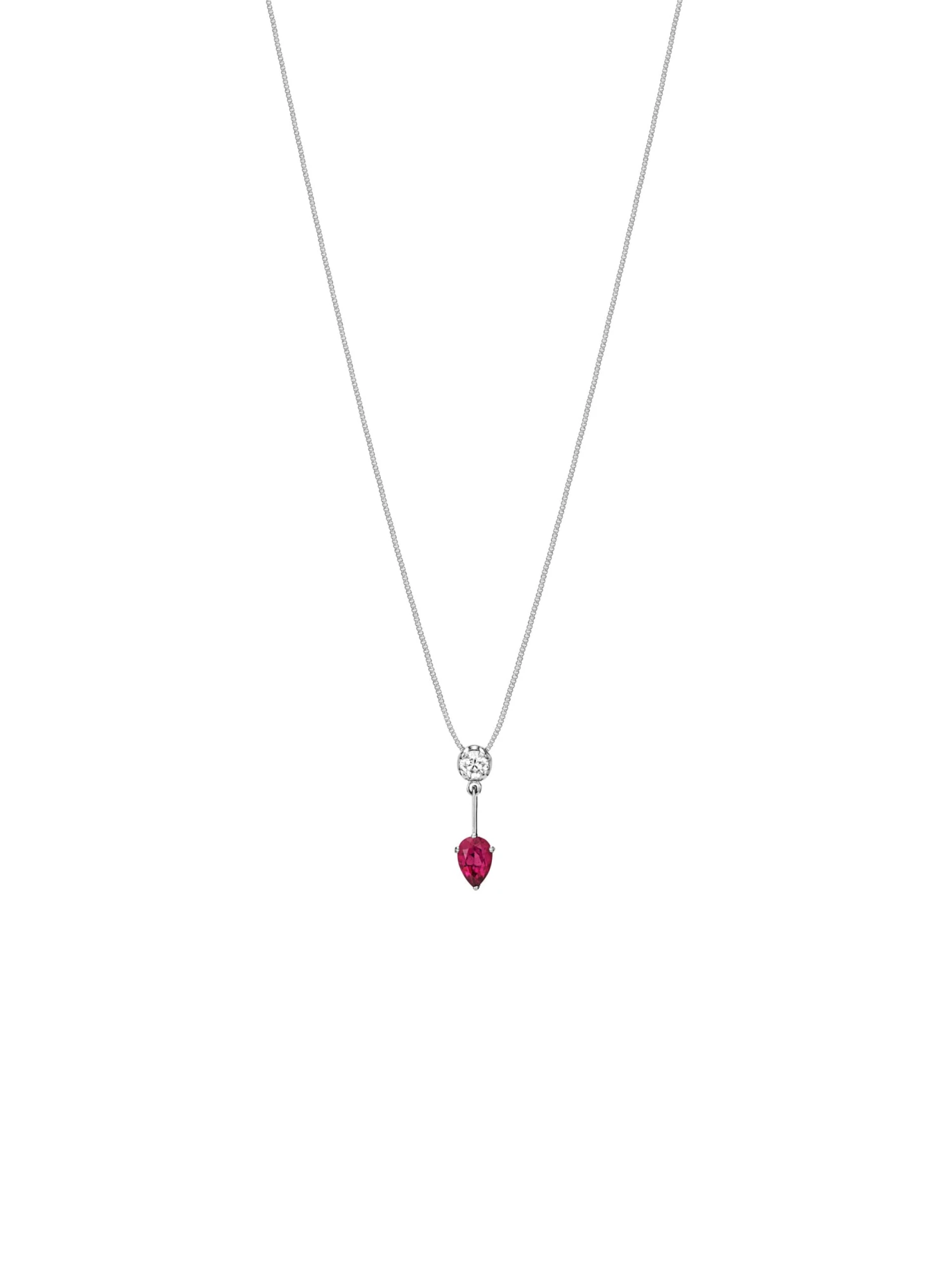 The timeless look of the Daily Colors BY KIM pendant on a single-strand necklace in 18k white gold is underscored by the fascinating pink color of the pear-shaped rubellite of 0.35 ct and calls to mind the casual elegance of Parisians: Frenchwomen never overdo it – nonchalance is their style theme! High-quality basics and smart combinations are the secret of their timelessly chic appeal. The colored gemstone forms a perfect contrast to the delicate brilliant-cut diamond of 0.13 ct and provides a touch of color to every look without being too dominating.