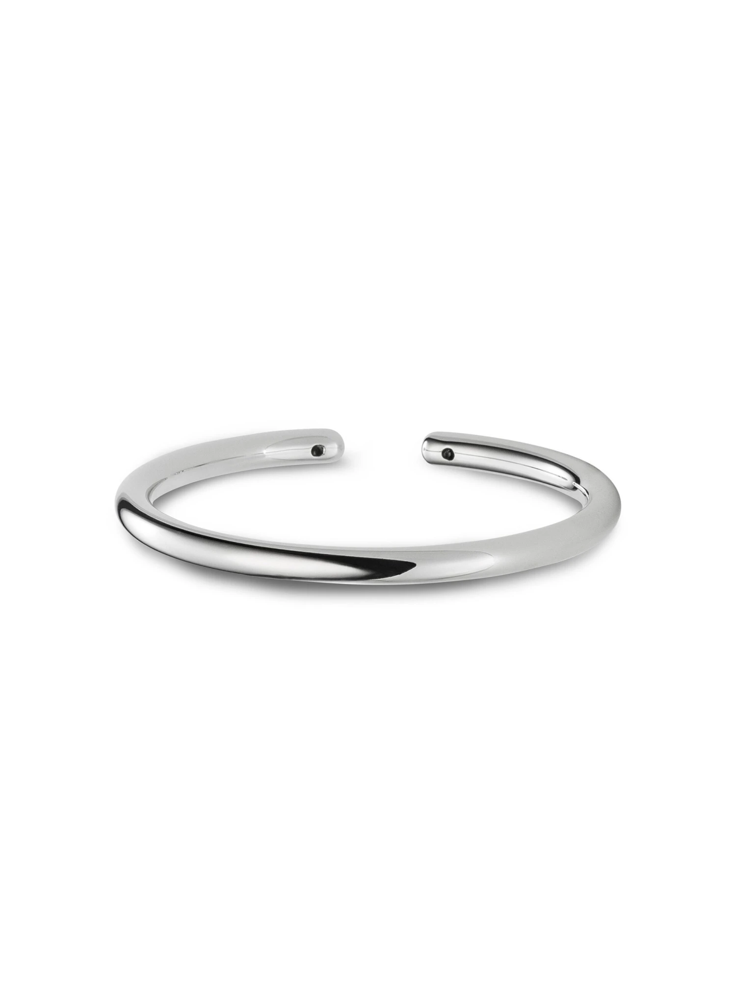 Huge flair is required to create the Flix.Flex oval bangle. Pure muscle force is used to bend it into the rough form and it is then transformed into the individual fit with strong and precise hammer blows. The result is a 5 mm wide bangle in pure 18k white gold which is actually flexible and bendable without losing its form.