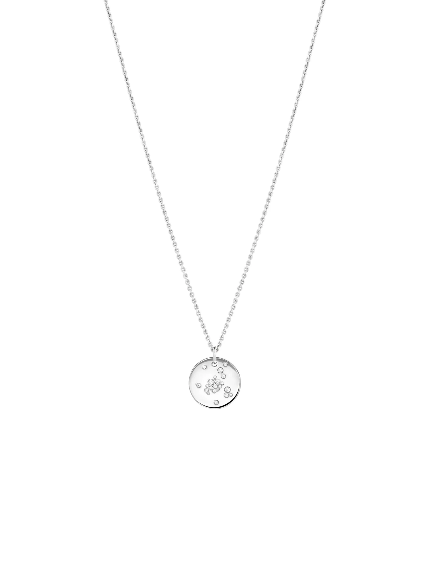 Jewelry with a strong symbolic meaning that accompanies you every day. The secret of the Lucky BY KIM pendant lies in its harmonious overall composition: 21 brilliant-cut diamonds of 0.18 ct seem to be randomly scattered on the little plate made of 18k white gold and provide fascinating highlights. The sparkling cable chain has a length of 50 and 45 cm and can thus be perfectly combined with other necklaces. With this new favorite necklace, you can create a new look every day!