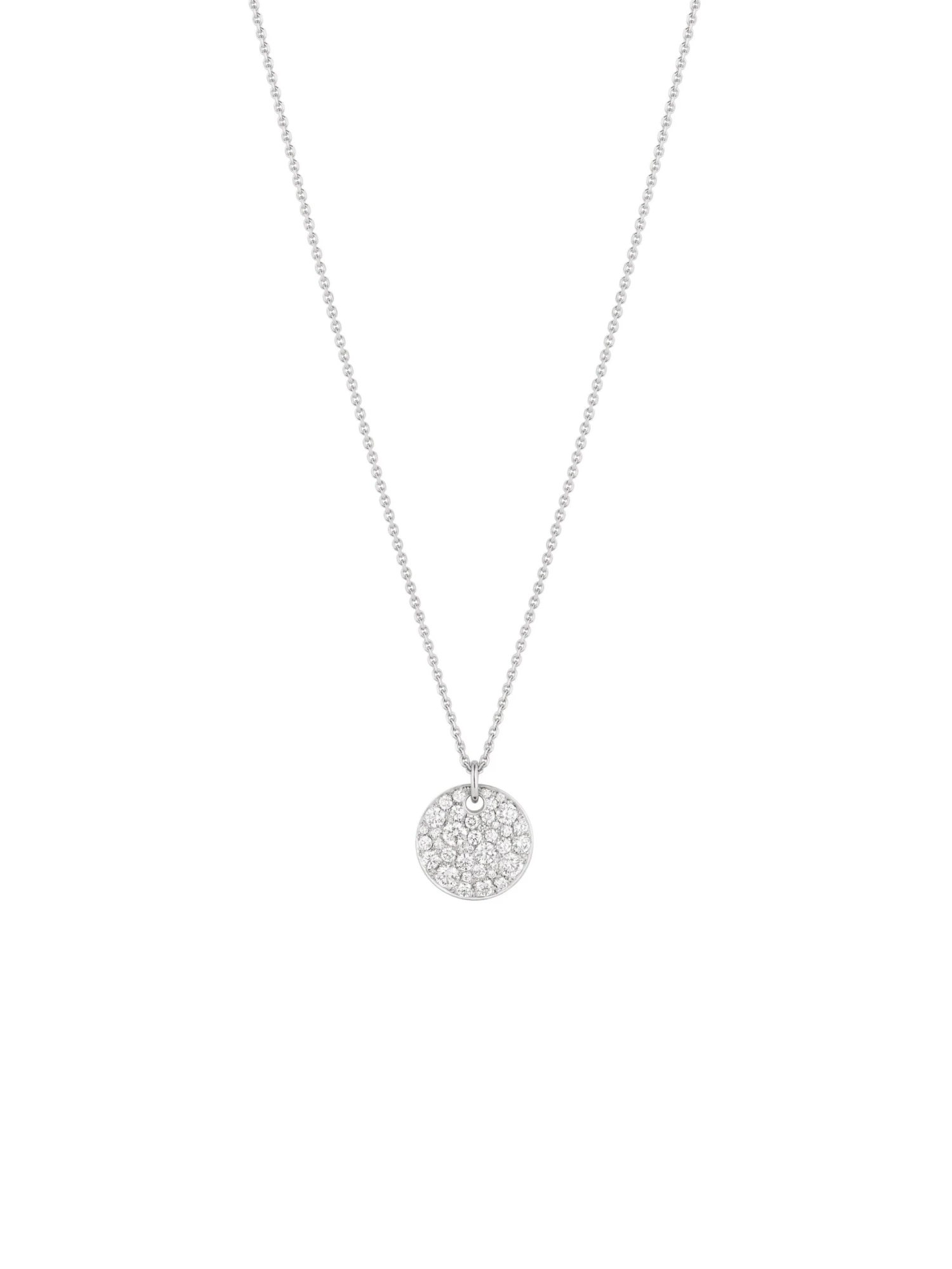 Jewelry with a strong symbolic meaning that accompanies you every day. The secret of the Lucky BY KIM pendant lies in its harmonious overall composition: 38 brilliant-cut diamonds of 1.50 ct seem to be randomly scattered on the little plate made of 18k white gold and provide fascinating highlights. The sparkling cable chain has a length of 50 and 45 cm and can thus be perfectly combined with other necklaces. With this new favorite necklace, you can create a new look every day!