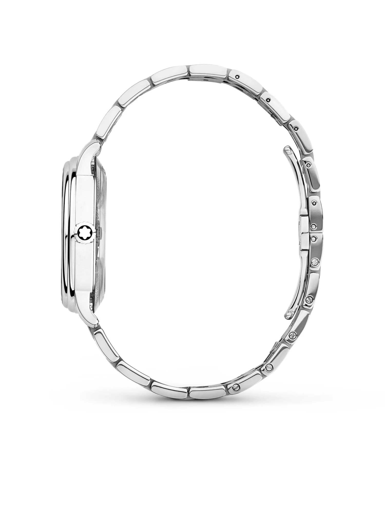The Tradition Automatic Date is a classic watch in every regard. The 32-millimeter case features the characteristic Montblanc horns and two-stage bezel. The silver-white dial with rhodium-plated Roman numerals, white hour markers, and railroad minute scale is crowned by classic feuille and baton hands. A stainless steel bracelet rounds off the cool and elegant design.