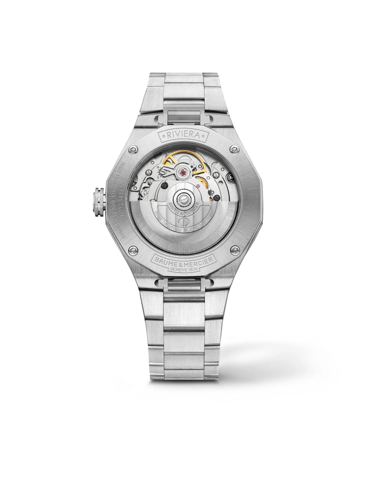 Baume et Mercier launches the sixth generation of the Riviera, which has been one of the Maison’s icons since 1973. The sporty Riviera Automatic 36 mm Ref. M0A10679 with a stainless-steel bracelet and a 36-millimeter stainless-steel case features the distinctive twelve-sided titanium bezel with its four characteristic screws. Faceted hands and Roman numerals set shimmering accents on the blue sunburst dial with the legendary wave pattern. The three-hand watch with date display at three o’clock is water-resistant to approx. 50 meters and powered by Swiss self-winding caliber Sellita SW200.