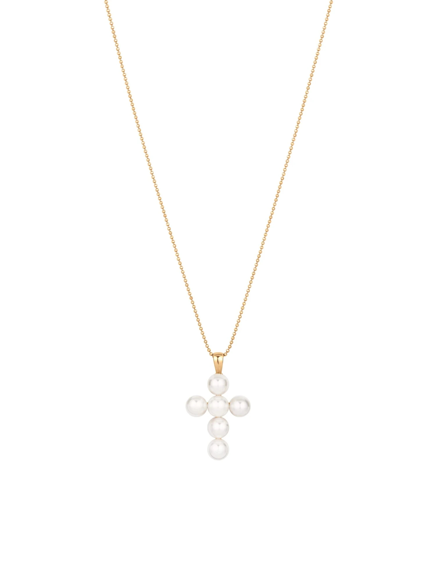 The uniqueness of this Tidedrops by Wempe Casuals cross pendant is in the gentle shimmer of the six cultured Akoya pearls. These 6 to 6.5 millimeter natural beauties are connected to each other almost invisibly. A 45 centimeter long beaded chain with diamonds ensures stimulating flashes of light that add a casual flair to this jewelry creation. A piece that will outlive trends and generations and that can be gifted for many different occasions.