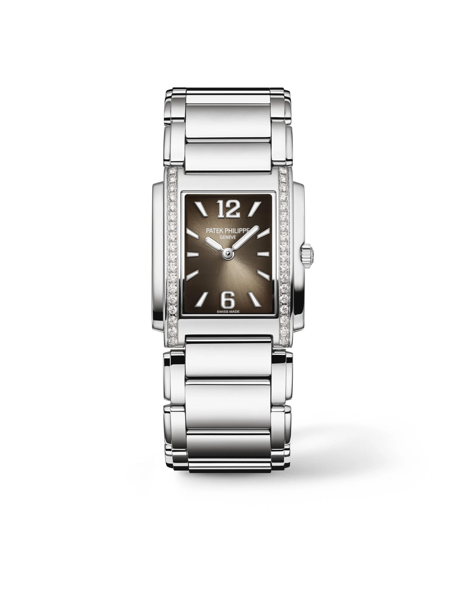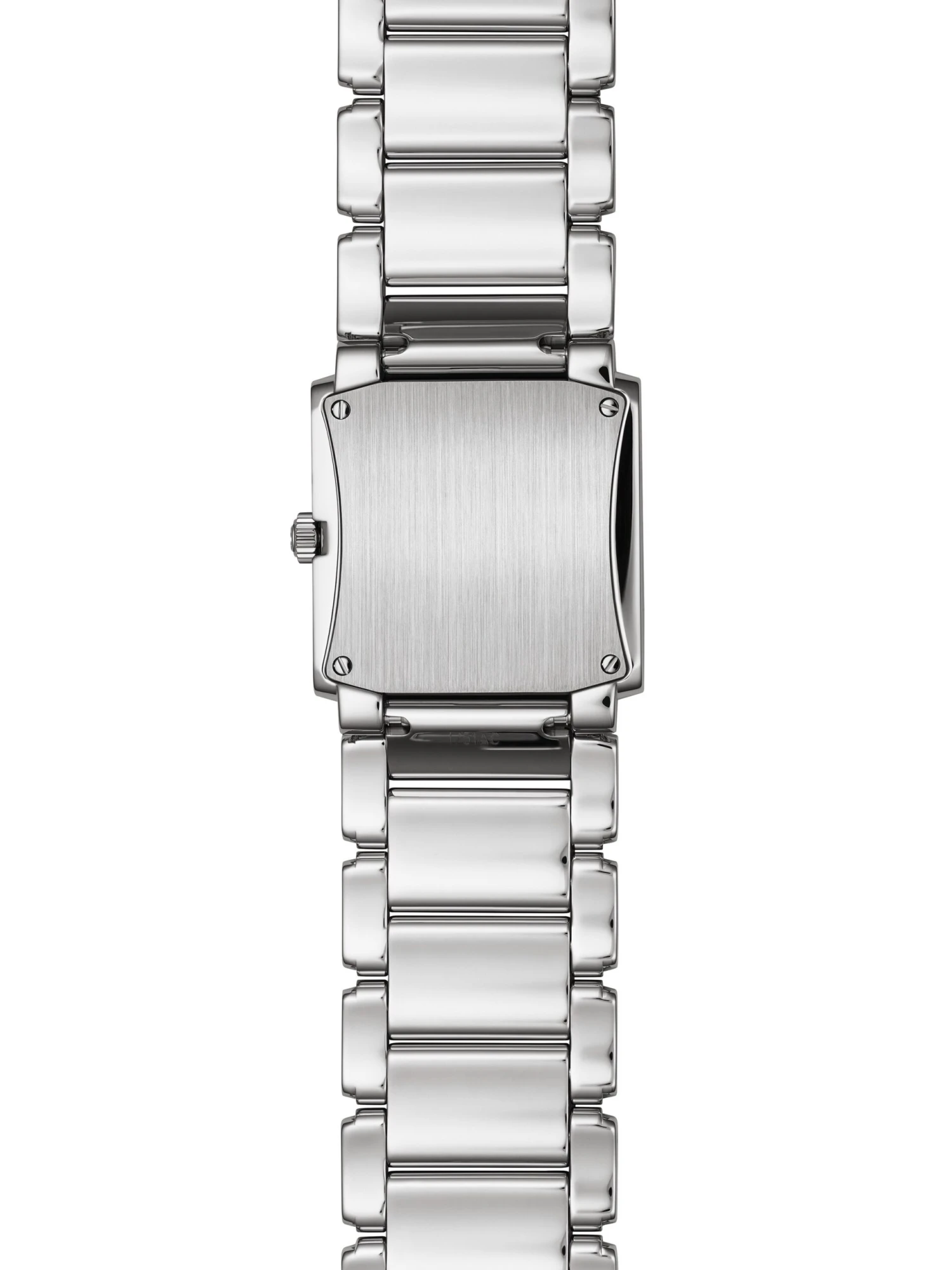 The reference 4910/1200A-010 provides a contemporary interpretation of art deco while also offering a rectangular watch of the most beautiful design. Its refined stainless steel case comprises multiple parts and measures 25.0 x 30.0 millimeters on top and a modest 6.8 millimeters in thickness, with a silhouette boldly adorned by 36 diamonds. The gray dial of this ladies’ watch slightly changes in color depending on the angle of incident light. A timeless classic with that certain something.