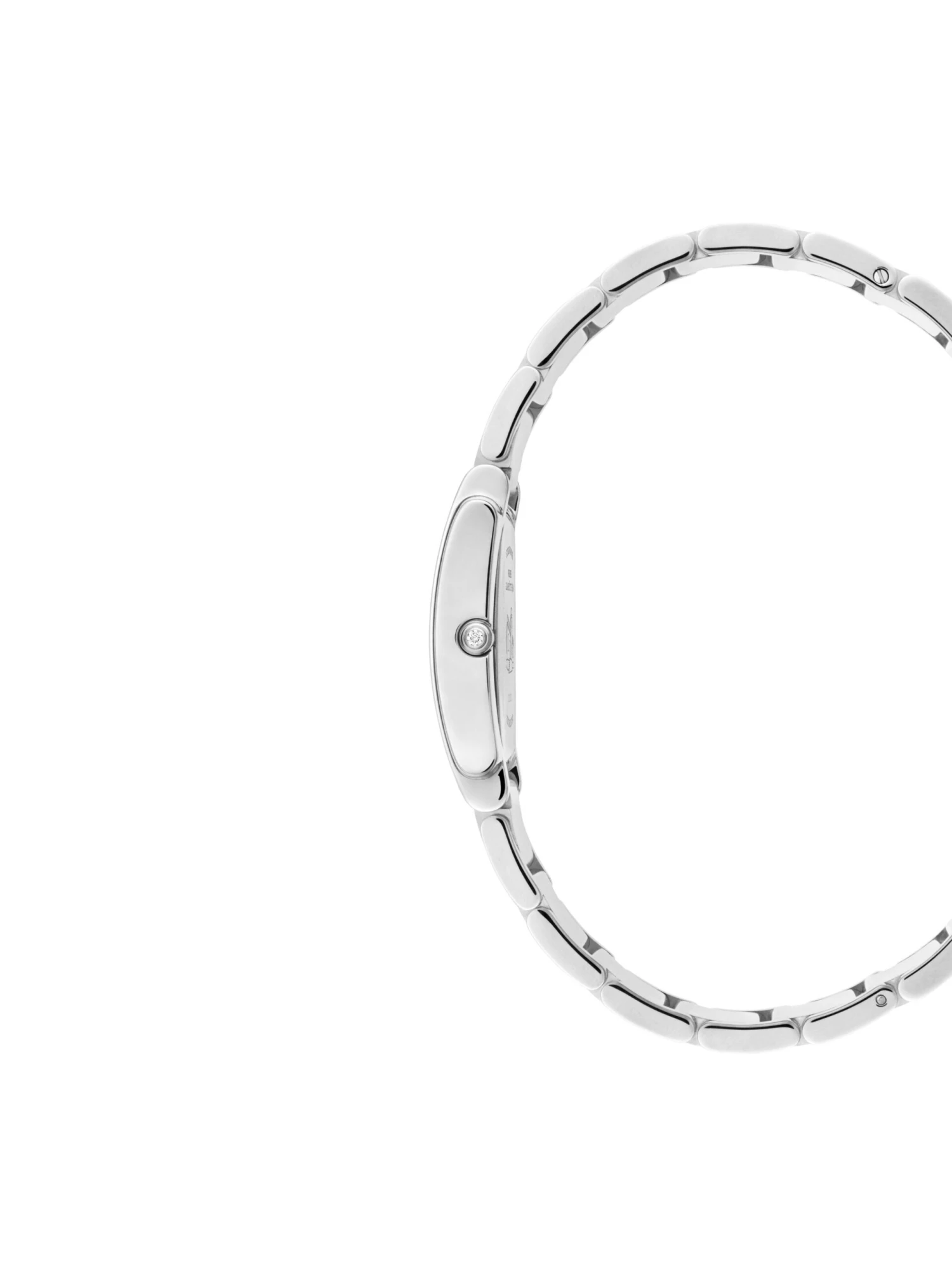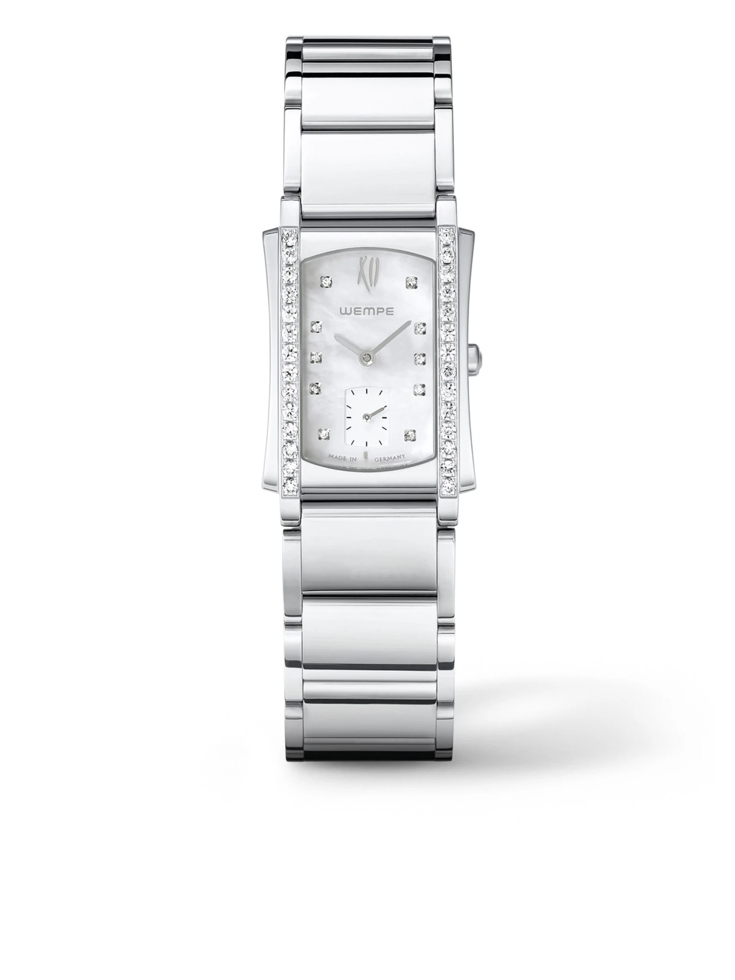 Radiant stones meet high-sheen stainless steel on the Zeitmeister Manchette: A bezel with 28 brilliant-cut diamonds and a total of 0.47 ct combine with 10 brilliant-cut diamonds on the white mother-of-pearl dial to form a stunning piece of adornment. Incorporating features such as a stop-seconds function and subsidiary seconds dial, this watch with a narrow shape will quickly become a favorite that will delight you daily.